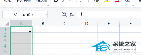 2、按下回车键退出数字1的编辑后,用户需要在左上角的名称框中输入a1:a500。