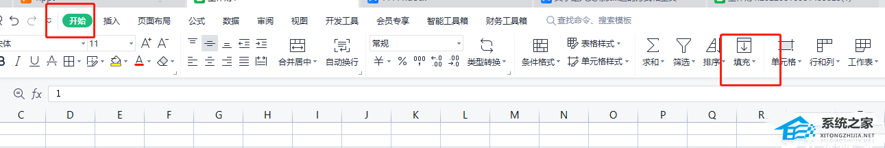 4、这时用户在菜单栏中点击开始选项,将会显示出相关的选项卡,用户选择其中的填充选项。