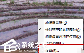1、我们鼠标右键点击电脑桌面右下方的输入法切换按钮,在弹出来的恶选项里点击设置按钮。