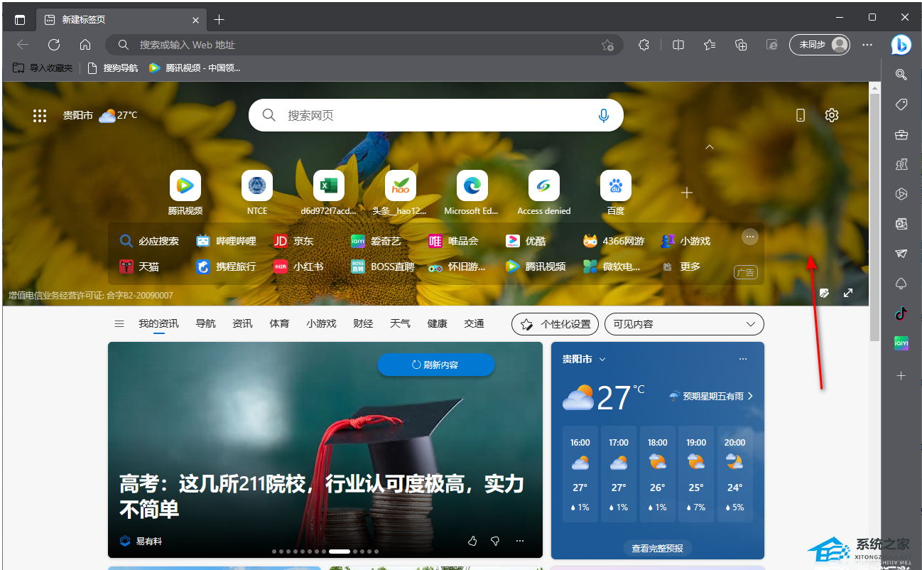 4、应用之后,返回到edge浏览器的主页中,你可以看到主页的背景已经更改好了,非常的漂亮。