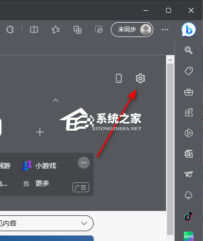 1、将电脑桌面上的edge浏览器点击打开,进入到主页中,在主页中你可以看到页面背景是灰色来显示的,如果想要更改成其他的背景,那么我们点击设置图标按钮。