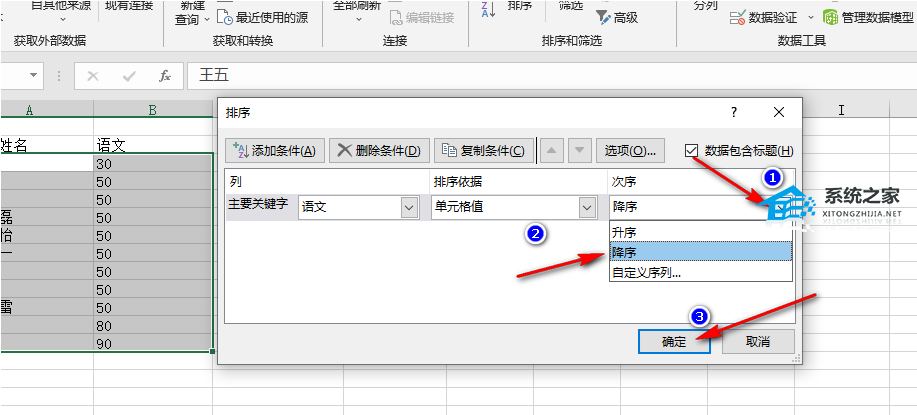 以上就是系统之家小编为你带来的关于“Excel表格成绩从高到低排序的方法”的全部内容了,希望可以解决你的问题,感谢您的阅读,更多精彩内容请关注系统之家官网。