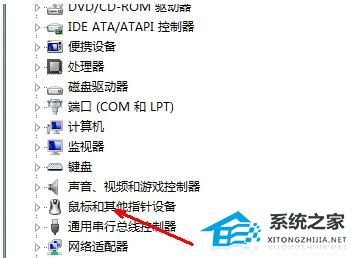 4. 进入设备管理器,找到鼠标选项,打开之后,双击你的鼠标选项,打开鼠标属性页,这里有你的现有的鼠标驱动信息。