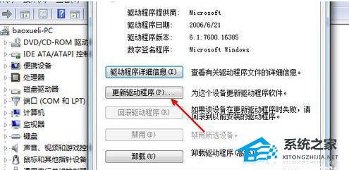 6. 把你的ps2接口的鼠标拔下来,重新插上你的USB鼠标,插上之后,系统一般会开始自动安装驱动。如果没有安装,就再打开刚才的鼠标属性的页面,点击更新驱动程序按钮,更新一下驱动。一般如果是驱动原因的话,通过此方法便可以解决。