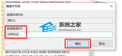 8、点击修改后在弹出的对话框中,在数值数据下面的框内输入“回收站”然后点击确定。