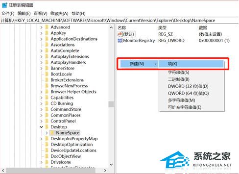 5、在展示界面的右侧空白区域右击,新建“项”。