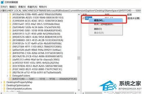 6、新建“项”完成后点击新建项会出现以下界面,将新出现“项”的名字重新命名为{645FFO40——5081——101B——9F08——00AA002F954E}。