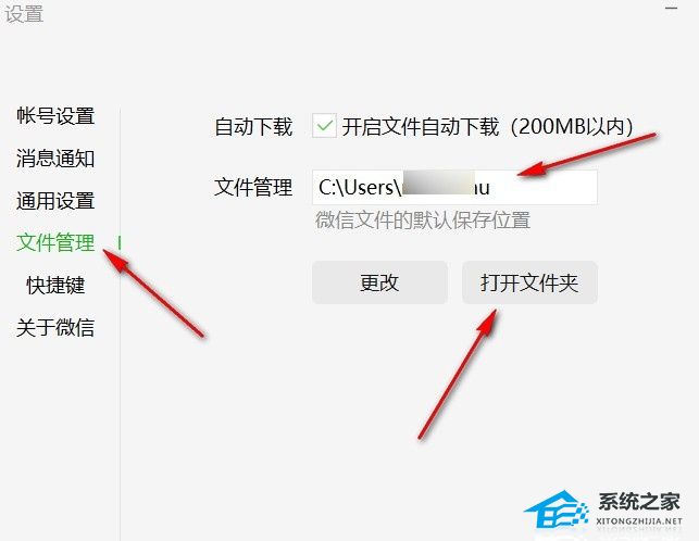3、我们在设置页面中点击“文件管理”再点击页面右侧的“打开文件夹”选项。