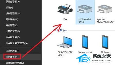 进入之后点击所有控制面板项并选择“设备和打印机”。