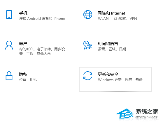 1、按下win键 i键,打开windows点击更新和安全设置。