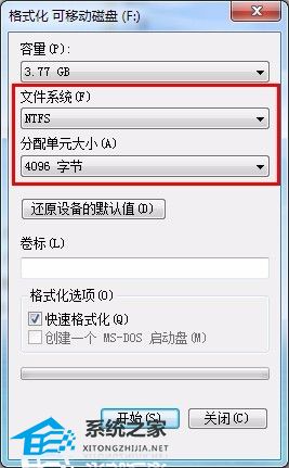 3、通常我们在格式化硬盘或者U盘又或者移动硬盘的时候选择默认的4096字节即可,但如果实在是需要提升一点点读取速度,那么也可以格式化分配单元大小选择为8K、16K甚至是32K等再进行格式化。