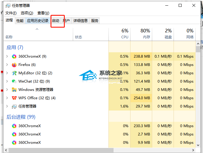 6、在打开的任务管理器窗口中,用户将选项卡切换到启动选项卡上。