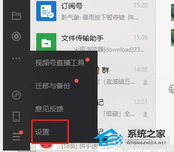 2、将会拓展出相关的选项卡,用户可以看到有迁移与备份、意见反馈、视频直播号工具等选项,需要点击设置选项。