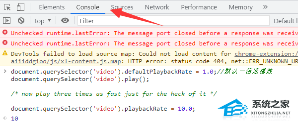 6. 此外,在“console”下使用图示代码还能实现倍速播放。