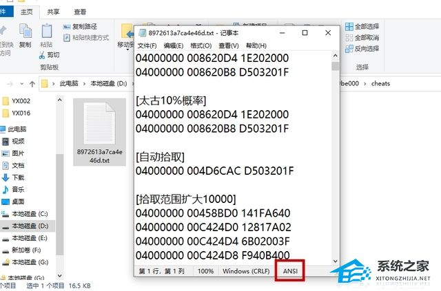 打开你刚刚的金手指文件,发现右下角的文件格式是ANSI格式。