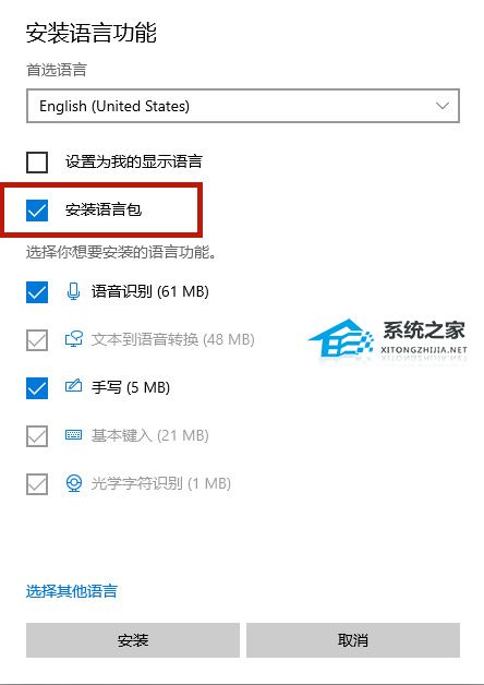 5、在安装语言包页面点击【安装】,之后安装语音包需要一定的时间,耐心等待即可。