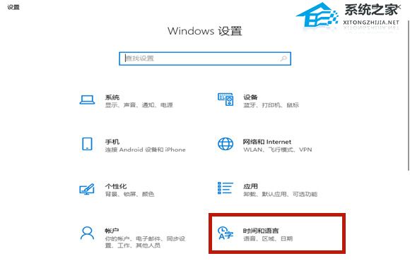 2、在设置页面中点击右下角的【时间和语言】。