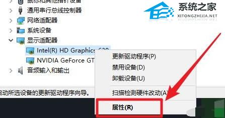 2、进入到新的的窗口界面后,找到想要查看的设备类型,右击选择选项列表中的“属性”。