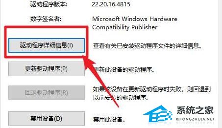 3、然后在打开的窗口界面中,点击“驱动程序详细信息”按钮。