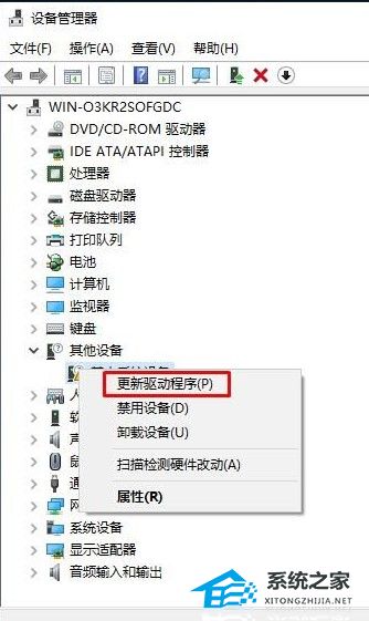 4、如果没有发现照相机,而是有未知设备的话,右键点击更新驱动。