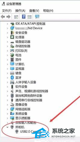 3、设备管理器窗口中,展开照相机选项,会显示摄像头的驱动型号。