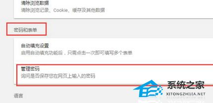 4、向下拖动找到密码和表单下面的“管理密码”点击打开。