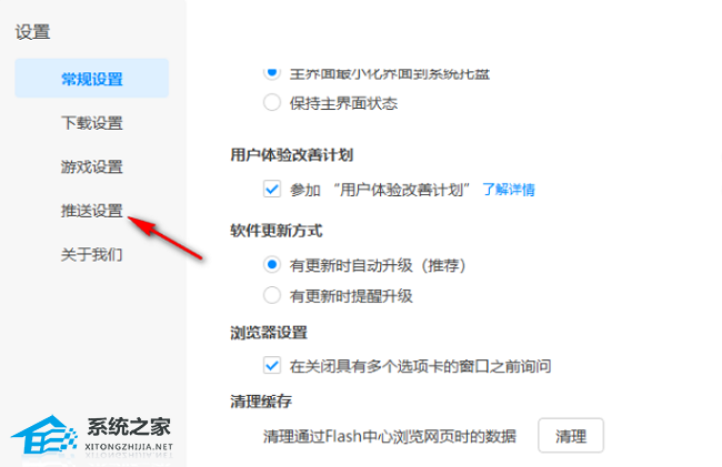 3、在打开的窗口界面中,点击左侧栏中的“推送设置”选项。