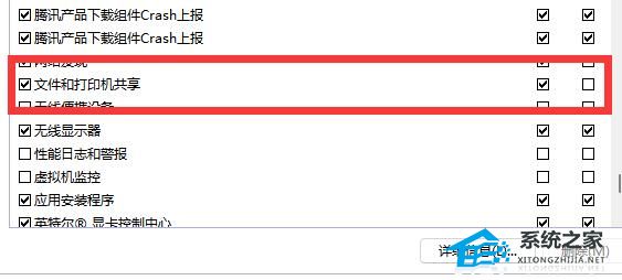 3、然后找到“文件和打印机共享”并全部勾选上即可。