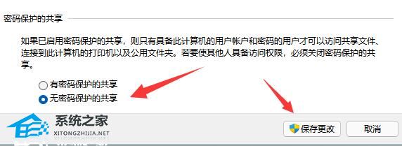 4、在底部选择“无密码保护的共享”并保存更改即可。