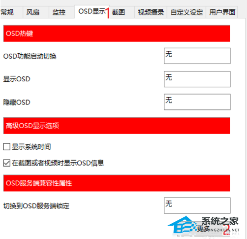 3、如果要调整显示字体类型、颜色、显示位置等,点击“OSD显示”,选择“更多”。