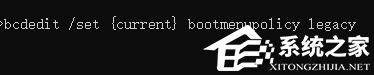 2、在弹出的命令输入窗口中输入“Bcdedit /Set {Current} Bootmenupolicy Legacy”回车确定。