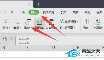 6、输入完成后,点击上方“插入”下的“形状”。