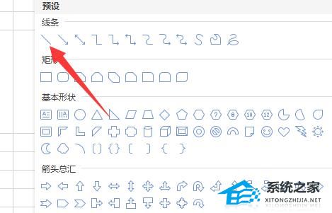 7、随后在线条下选择“直线”。