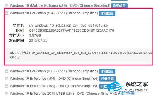 3. Windows 10 Education (x64) ,是中文版64位的教育版的Win10 ,适合学校使用,一般老师和学生选择的比较多。