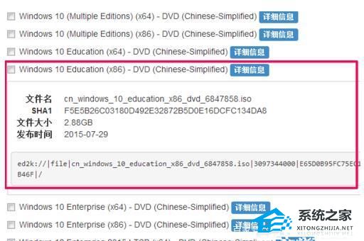 4. Windows 10 Education (x86) ,是中文版的32位的教育版Win10,适合学校使用,一般老师和学生选择的比较多。