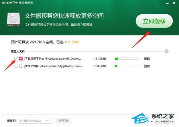 4、我们勾选需要搬迁的文件,点击上方【立即搬迁】即可。