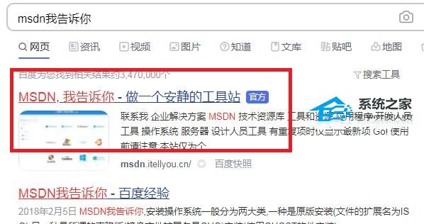 1、首先在百度搜索栏中输入“msdn我告诉”,进入官网。