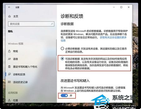 2. 如果无法开启的话,进入诊断和反馈,勾选“可选诊断数据”并开启下方选项。