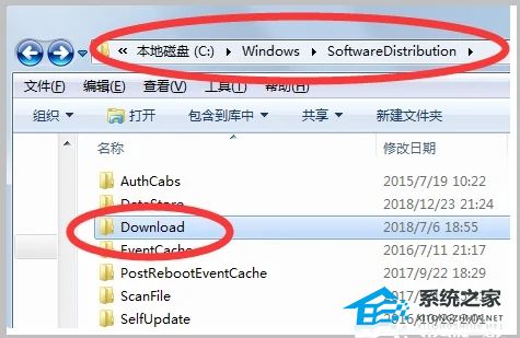3.在SoftwareDistribution文件夹中找到“Download”文件夹,同样双击打开Download文件夹。