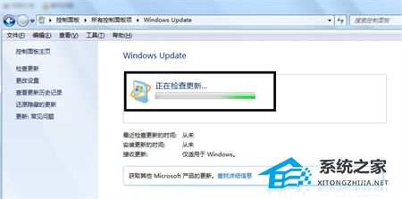 3. 弹出”Windows Update“窗口中点击”检查更新“按钮。
