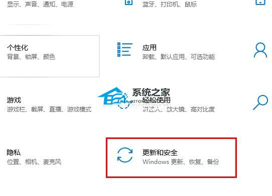 2. 点击“更新和安全”。