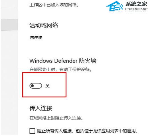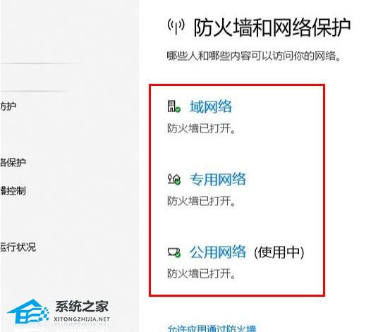 5. 依次进入“域网络、专用网络、公用网络”选择“关闭”即可。