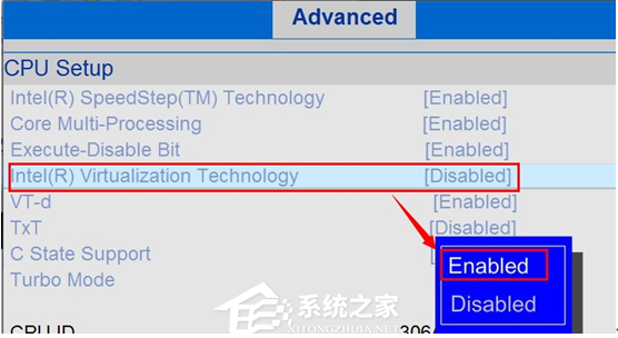 开机按F1,进入BIOS选择Advanced,再选择CPU setup的选项,选择Intel(R) Virtual Technology设置成Enable的开启状态即可。