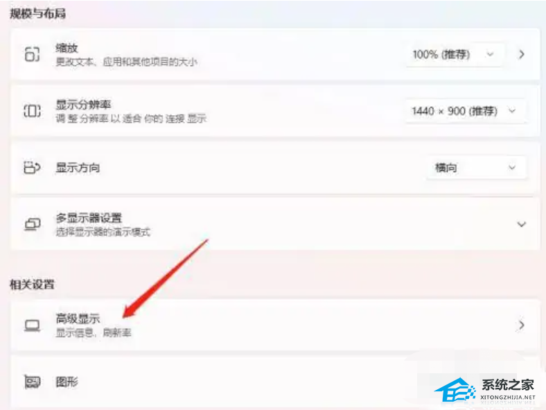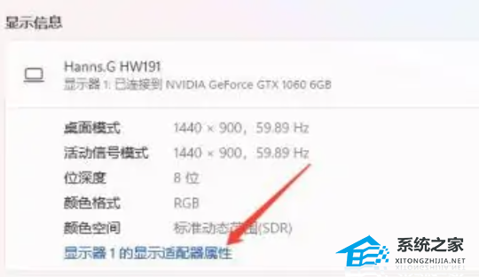 第4步,进入高级显示设置,点击显示器的显示适配器属性。