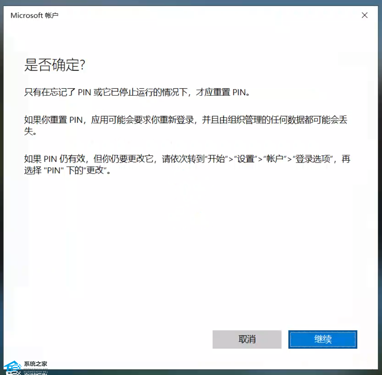 2. 提示是否确认重置PIN,此处选择“继续”。