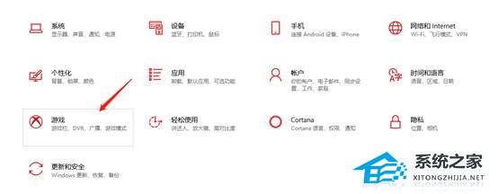 首先要确保Win10自带的游戏控制栏和录屏功能处于开启的状态,打开“设置”,选择“游戏”。