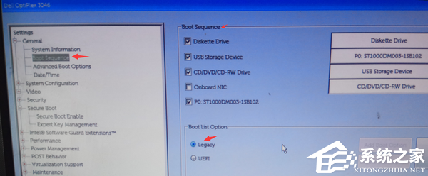 6. 进入“Boot Sequence”菜单后,您将看到当前启动顺序的列表。