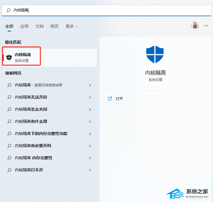 1. 开始菜单搜索“内核隔离”。