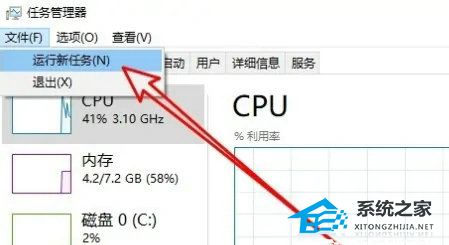 3. 在任务管理器的窗口中,依次点击“文件/运行新任务”的菜单项。