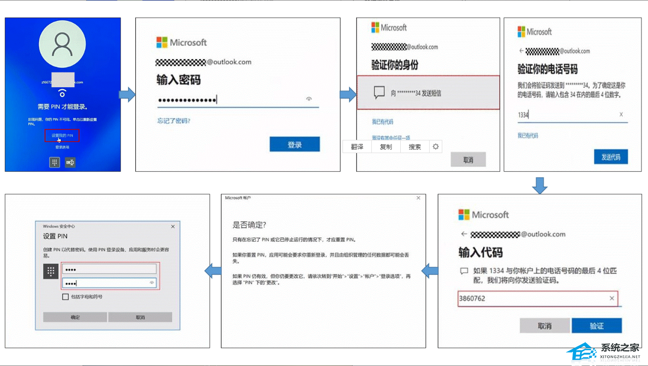 4. 请选择微软帐号或手机号找回密码,例如通过手机号发送验证码,并验证手机号码后四位。